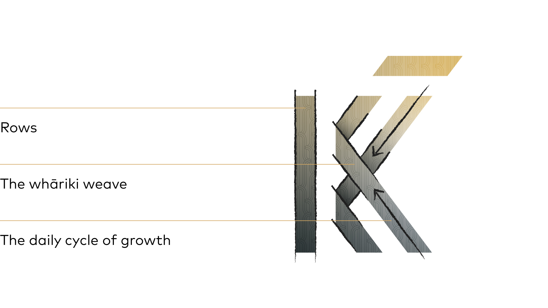 Tipu as the modifier of Kaingaroa, the commitment, energy and value we bring. It represents the increasingly sustainable way we work - the steps we take to grow better every day. The T is understated, and takes a back seat to the positive form of the K.